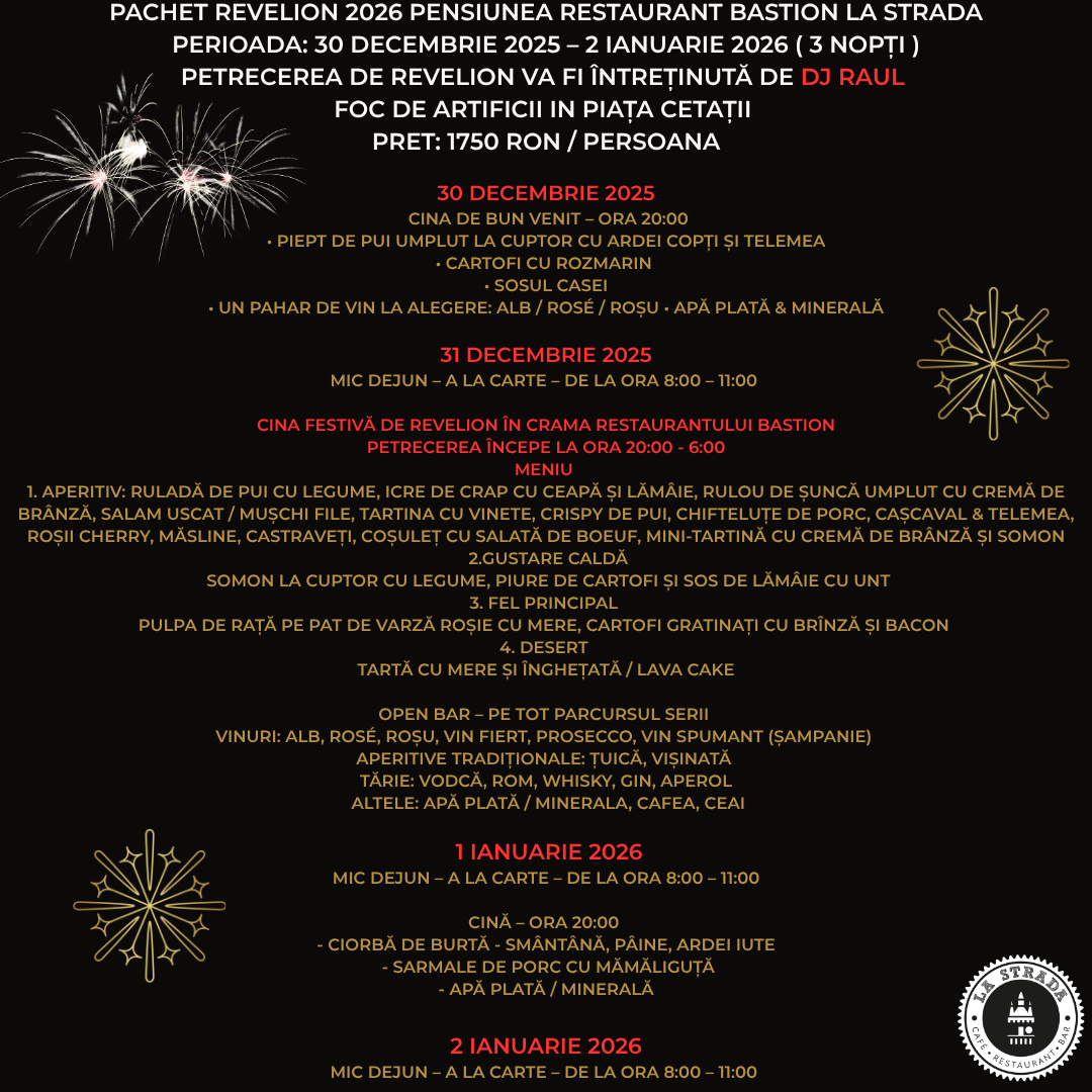 În inima Cetății Sighișoara si nu numai, oferim o serie de locații diverse, fiecare având propriul său farmec și specific. Acestea includ trei restaurante, doua pensiuni, un magazin de souveniruri, o langoșerie și o shaormerie, toate gestionate de o echipă de oameni ambițioși și ospitalieri, dedicați să ofere oaspeților o experiență de neuitat, combinând ospitalitatea autentică cu servicii de înaltă calitate. Indiferent de locul pe care îl alegeți, veți fi întâmpinați cu căldură și profesionalism, bucurându-vă de tot ceea ce Cetatea Sighișoara are de oferit.