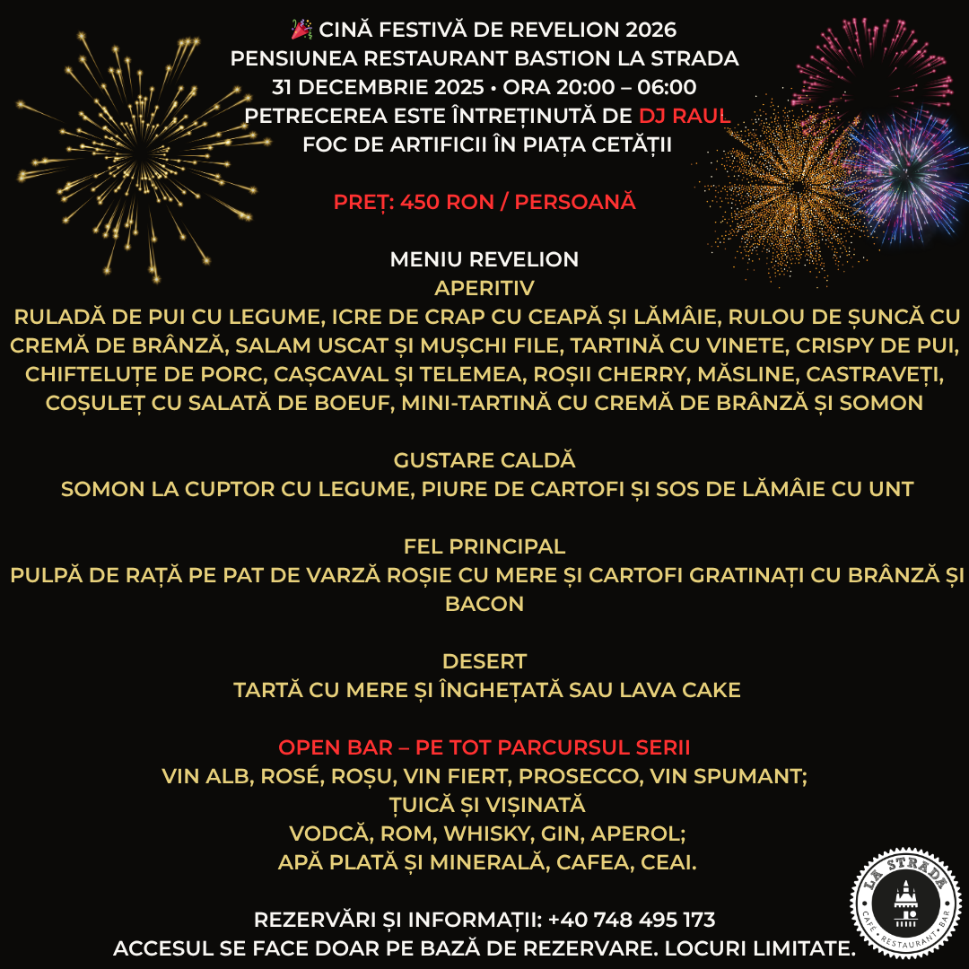 Recomand cu căldură Restaurant Bastion tuturor celor care își doresc o experiență autentică românească, cu mâncare tradițională foarte bine gătită!